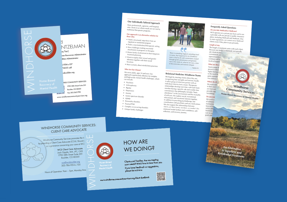 Above are examples of branding-matched printed items for a local non-profit that we have been working with for more than 20 years.