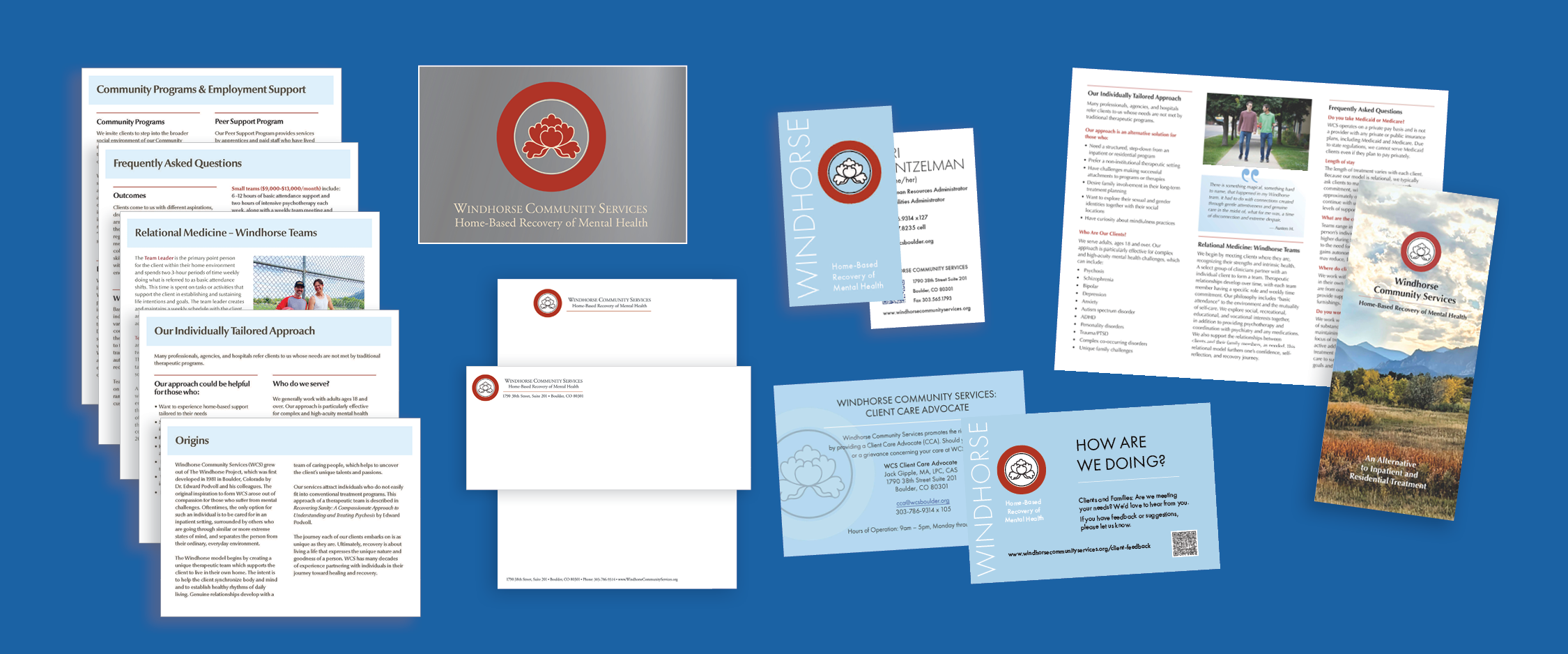 Business cards, stationery, rack cards, post cards and brochures which all work together
